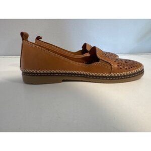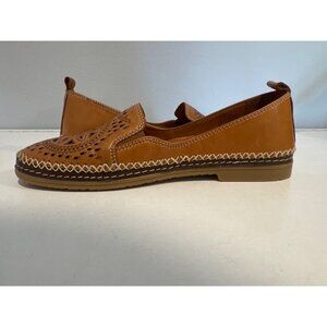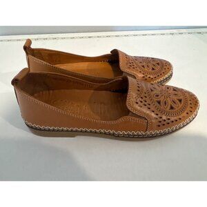 Spring Step Women Shoes Sz 37 Ingrid Camel Brown Perforated Leather Loafers Boho