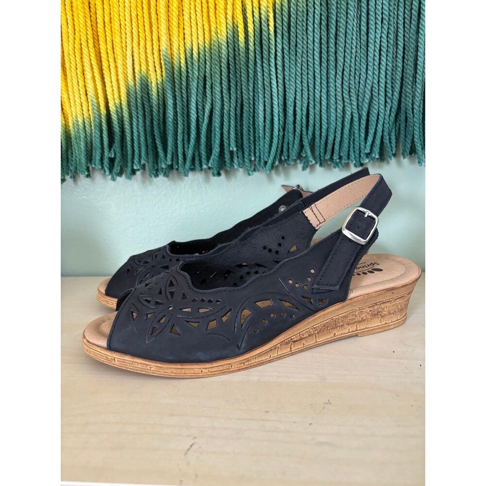 Excellent condition Spring Step Orella black slingback sandals with lasercut leather upper. Size Eu 39 (US 8.5)