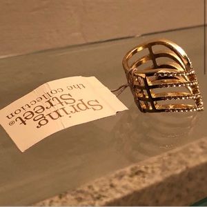 Brand New Spring Street Chevron Ring. Gold Tone with Clear Stones.