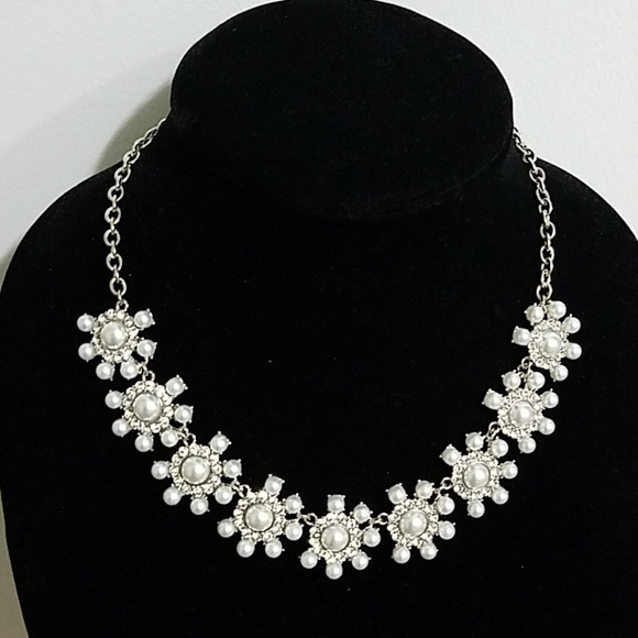 New, never worn 16+ Silver pearl Necklace with rhinestones