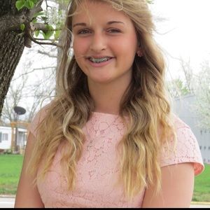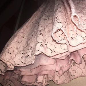 Light pink, short sleeve, floral dress. Has slight ruffles on the bottom. Great for a confirmation dress! Worn once and in great condition. Size 3/4 but fits smaller. I'm 5'2 100 lbs and usually wear a size 2 but this fits. Bought from Macy's. Paid $100 but asking $45