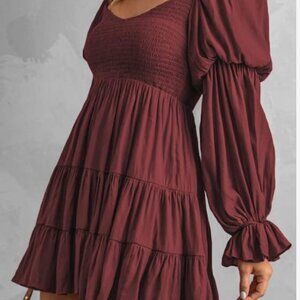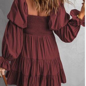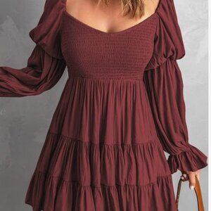 Spring Summer Dress Off The Shoulder V Neck Long Sleeve Ruffle Flowy- NEVER WORN