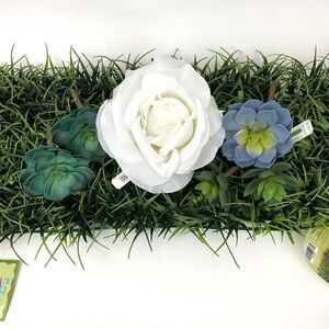 Spring Summer grass pads artificial greenery succulents and jumbo rose decor