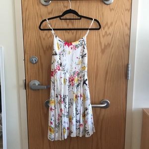 Spring sundress with bird, butterfly, and flower detailing. Invisible side zipper. Light and breathable. Easily dressed up or dressed down. Originally from OldNavy size small. Won’t shrink in wash.