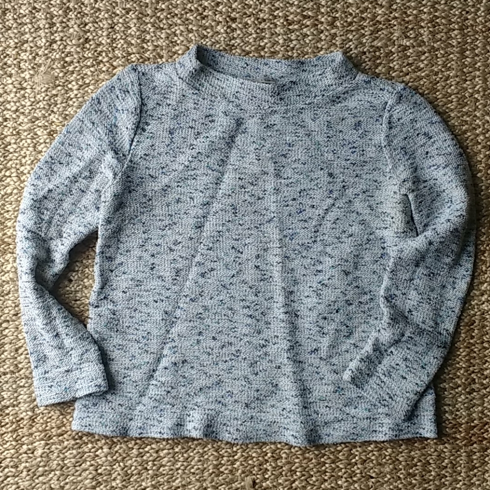 Multicolored thread knitted sweater, royal blue/teal/navy with gold thread