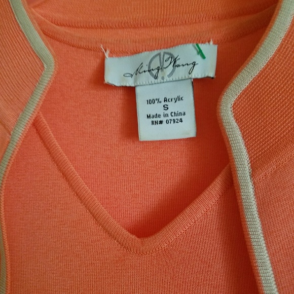 Beautifully detailed V-neck sleeveless sweater with matching ivory-trimmed cardigan. Salmon pink color. Perfect layering for your outdoors-to-air conditioning this summer!! Looks brand new!! Even prettier than the pictures