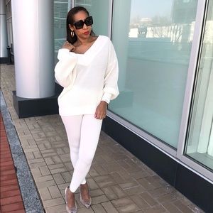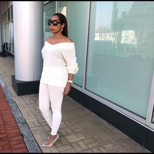 Light sweater with matching leggings!! Wear one shoulder up one down or wear both down