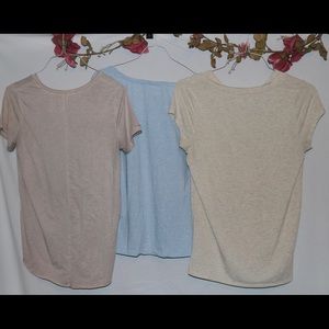 3 pastel tees!! Willing to sell individually if not interested in all 3. Great material. In sizes L, M & S