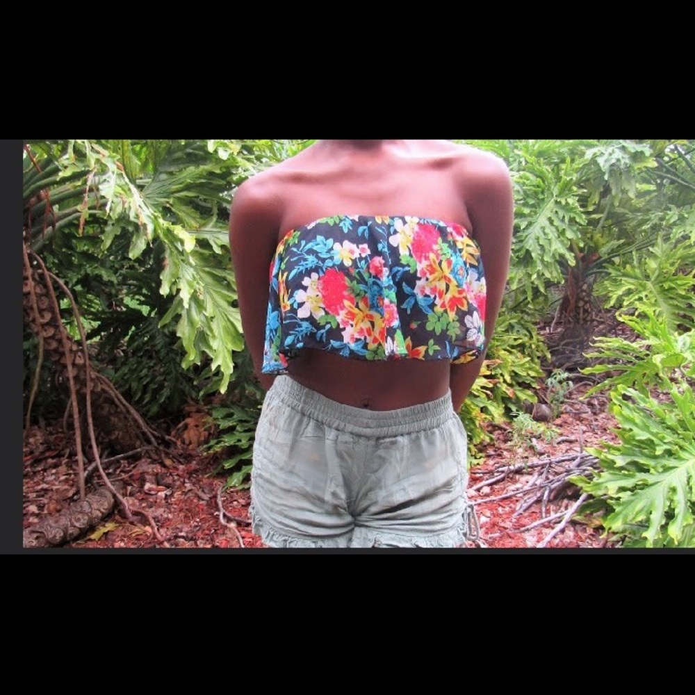Small, floral bandeau top. Great to wear by itself with a cute pair of shorts and sandals in Spring/Summer or with a pair of jeans and a cardigan in cooler times.