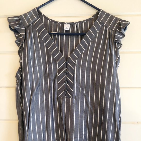 Sleeveless gray and white top