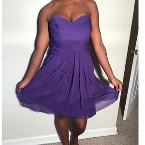 This David’s Bridal Size 6 gown speaks for itself. It’s flowwy, flirty, and fun! You can wear it to a wedding, social, engagement dinner, cocktail part, prom, homecoming, or gala. Piping and padded throughout!