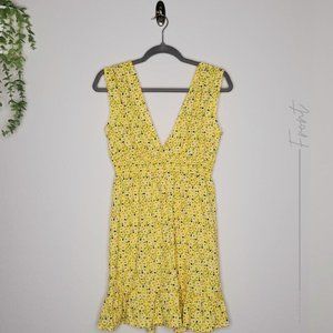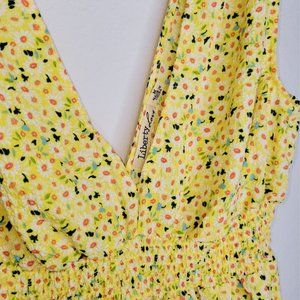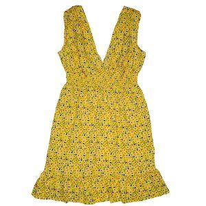 Spring Yellow Floral Mini Dress Sleeveless Size Medium
