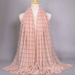 This grogeous hijab takes us back to our days in geometry class with its' beautiful squares.Thin enough to allow a great breeze no matter where you live. Breezy, Bold, and Beautiful.