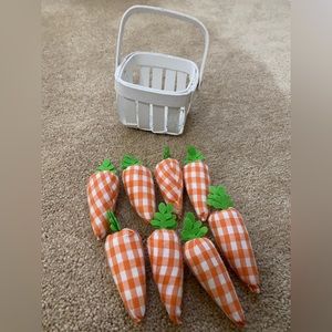 Basket with 8 fabric carrots