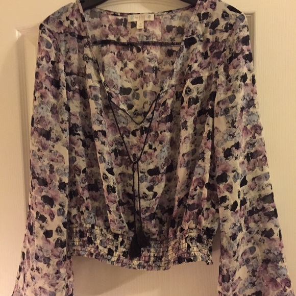 Chiffon feel floral blouse, bell sleeves /or best offer accepted