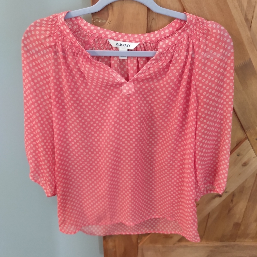 Light pink v-neck blouse with cream design.
