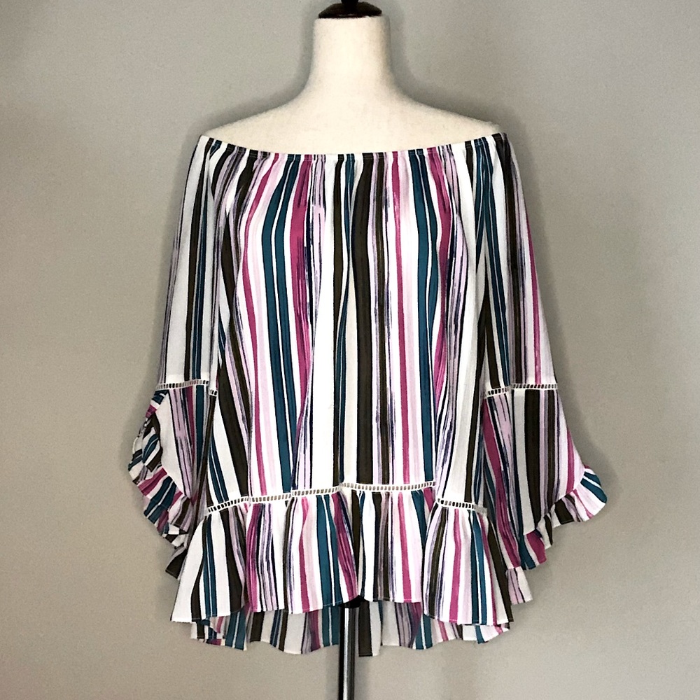 This beautiful spring/summer blouse is perfect for any occasion! The colors are so vibrant! It’s a wonderful cold shoulder top perfect for the warmer weather coming up! It is the perfect blouse to wear to lunch with friends, a dinner date, or any other occasion you name it! I’ve gotten so many kind compliments on it and so will you!