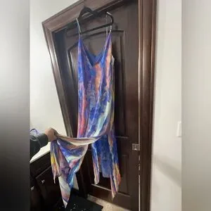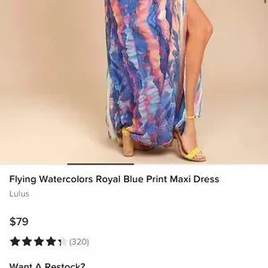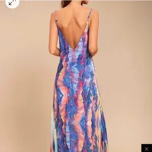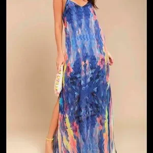 Size Large! LULUS - Flying Watercolors Royal Blue Print Maxi Dress- like New! Lightly worn