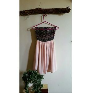 Short cocktail dress Zipper on top Tribal paterns Strapless Comment: Used once only.