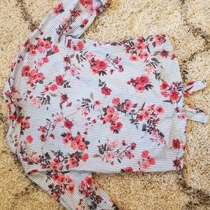 Adorable 3/4 sleeve button down shirt with a tie at the bottom. Never worn!!!