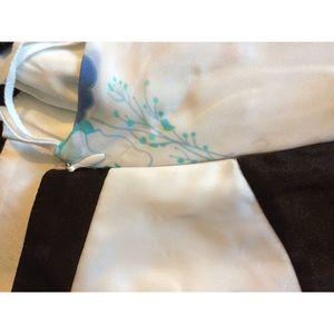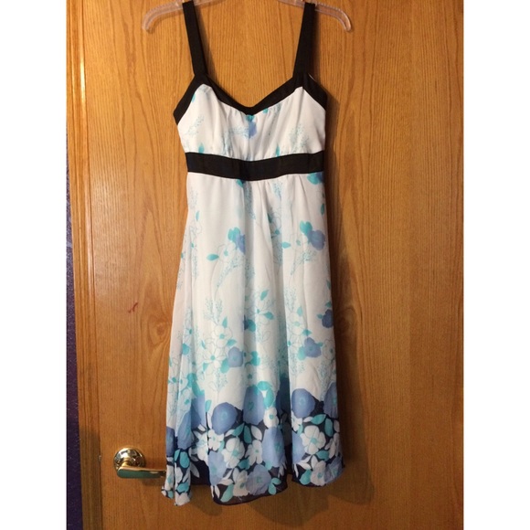 Floral pattern. Waistband is not elastic, zipper is on the side. 3/4" straps. Reaches below the knees. Possible junior sizing. Good condition, no visible errors