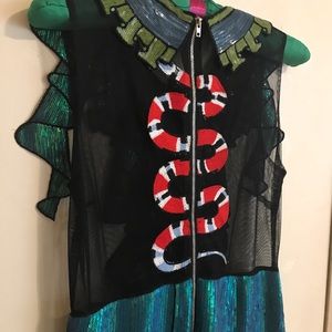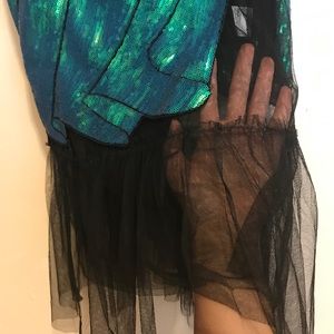 A beautiful dress I’ve used for a model at work only once. The black part is see-though. FYI, you might show off your nipples. Also, the model photo is editorial so the color of the dress isn’t accurate. See product photos carefully.