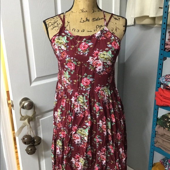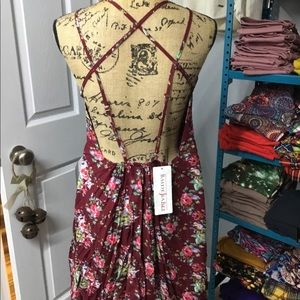 Wine with gorgeous floral design. Cross cross straps on back, all are adjustable