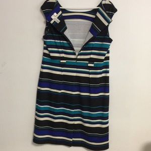 Dress new without tag stripes multi colors blue, green , black, cream no floaws