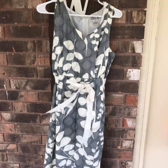 Cute gray and white floral spring dress with silk white tie..worn once to a wedding