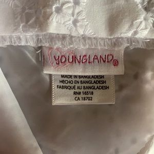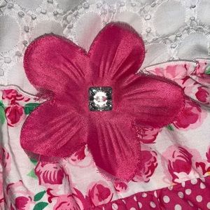 Good condition, worn once. Brand Youngland. Size 3T. No stains or tears. When I washed it some of the flower had frayed some ( shown in pictures). Smoke free home.