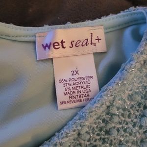 Light teal spring dress worn twice. Key hole back with knit over layer.