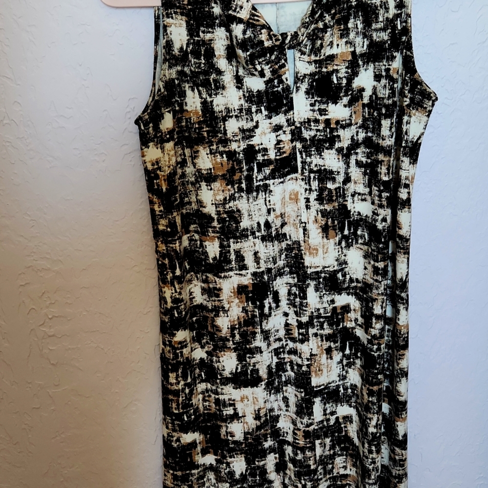 J.Jill, SPetite, brown, charcoal, offwhite print, machine washable, 95% rayon, 5% spandex, sleeveless