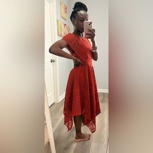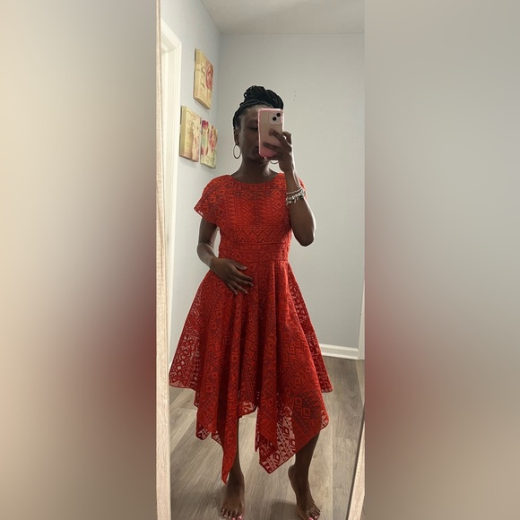 Orange spring time midi dress. Perfect for work, formal, or special event. Heavy material, but fits well