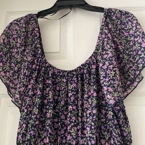 Spring dress in a beautiful lilac and green flower pattern on a navy blue background. Size XL, very flowy.