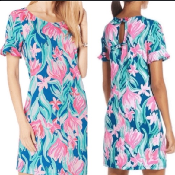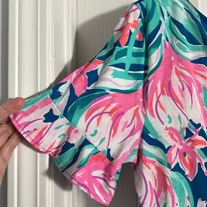 Beautiful spring colors with ruffle sleeves, and two tiebacks on the back for an elegant spring look.