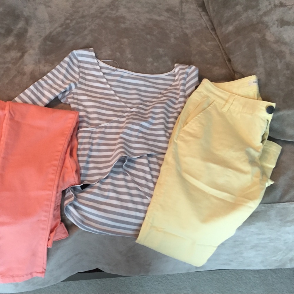 Great bundle . Two pairs of colored pants. Cute half crop.
