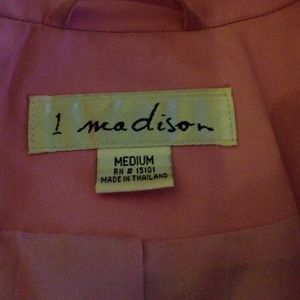 Pink coat with matching belt. It is about knee high with double horizontal buttons.