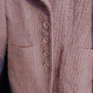 This is a lightweight coat full length Pink by Inc International Concepts size medium fabric content is 80% wool 12% mohair 8% nylon lining is 100% acetate dry clean only measurements are 38 in from hem to shoulder 20 and a half in pit to pit has five button closure on the front and two pockets on the front as well this is a fuzzy jacket it's not look at last picture