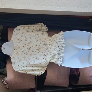 cinch waist style blouse with mustard yellow wild flowers