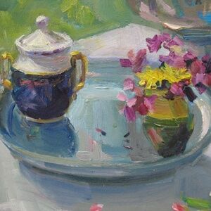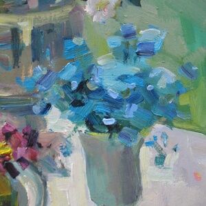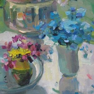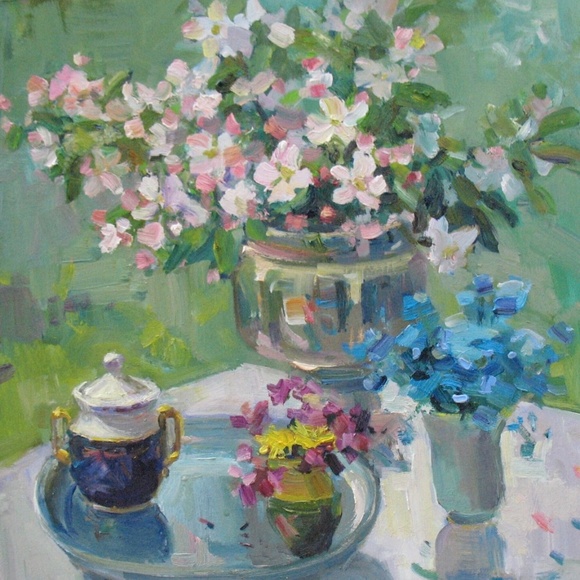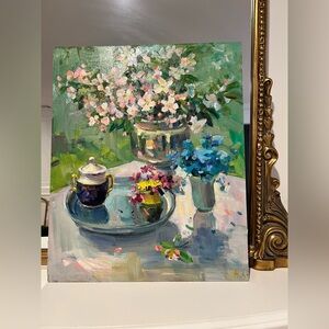 Spring Flowers, Still Life in Spring Garden, Kitchen decor, Gift for Her, Floral artwork, Botanical Art, Oil Painting on board