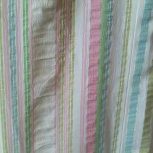 Lightweight jacket, fun colors, pink, blue, green, and white stripes