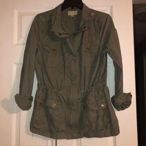 Army green jacket - with zipper and buttons. No issues aside from 2 buttons that a broken (see photos)