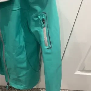 Very minimal wear, material is like water proof, arm pocket and hand cuffs adjust