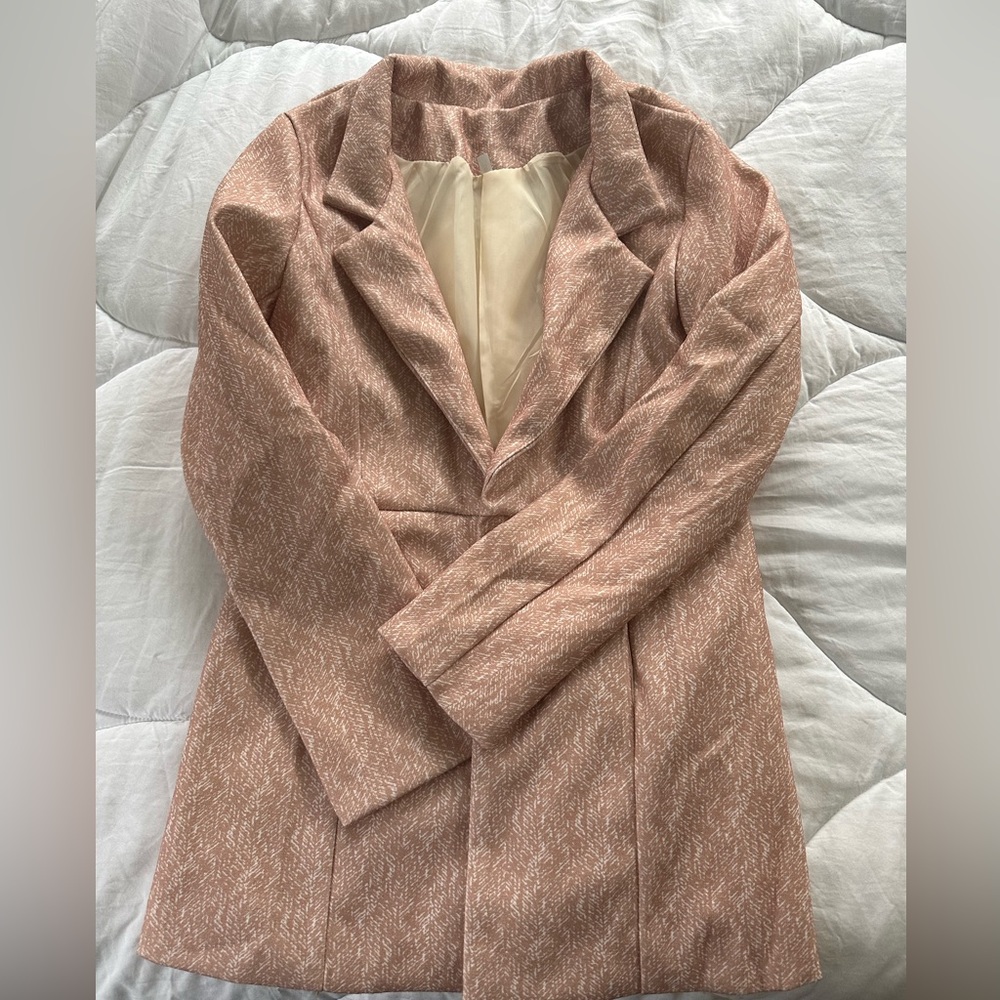 Never been worn. Didn’t fit well. Light pink chevron look