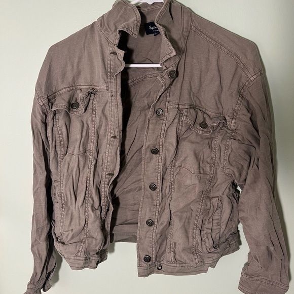 Light weight, wrinkly from being stored in my drawer, very cute I just have too many jackets.