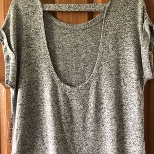 Just over the shoulder sleeve with folded detail, and cute back cut out detail. Super soft material! NWT!