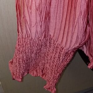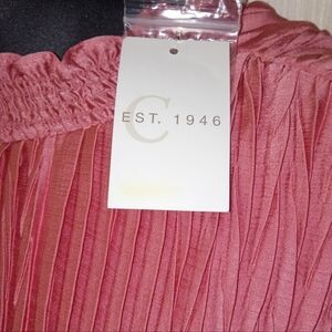 EST 1946 -22/24 W - Rose Long Sleeve Pleated Ruffled Blouse NWT. This pink blouse features elegant pleats and ruffled details, offering a sophisticated touch to any outfit. The long sleeves and flowy design ensure a comfortable and stylish fit. Perfect for both casual and formal occasions, this blouse is a versatile addition to your wardrobe. Sleeves 27', pit-pit 28', 100% polyester, machine washable.