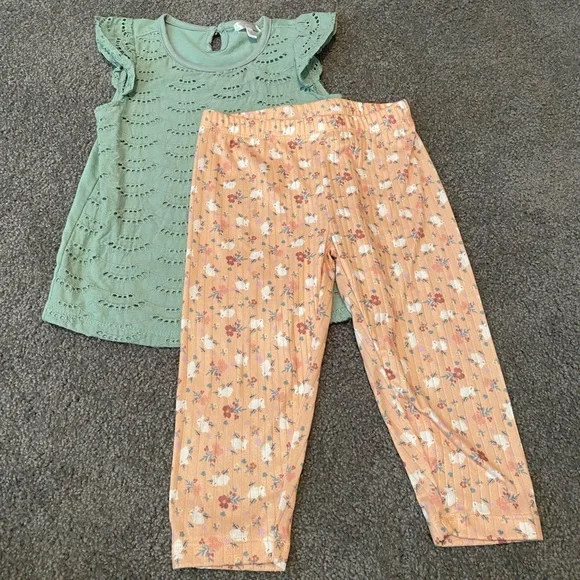 Cute outfit I washed and we never wore! Has bunnies on the pants. So perfect for Easter time. Super soft material.