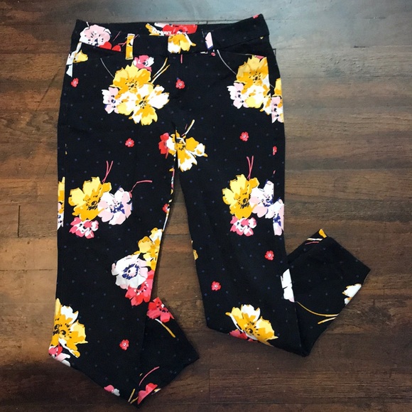 Black with blue dots and floral printed pixie pants