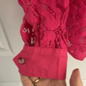 Option to roll sleeve ad shoe. In picture. Beautiful lace. Fitted silhouette